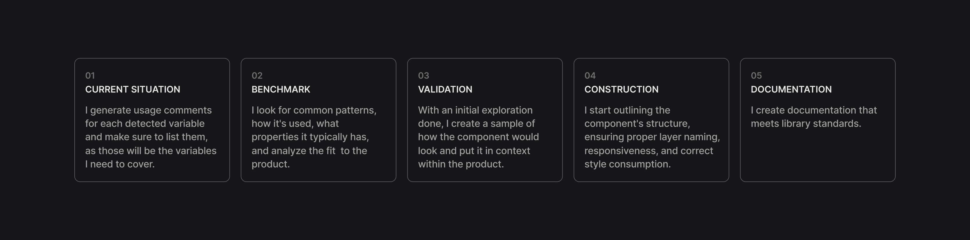 Many components in the library were created by me, and I must say it's the task I enjoyed most during my first months in Design Systems. What's my process? It always depends on the component's complexity and role in the product, but to simplify it into steps: