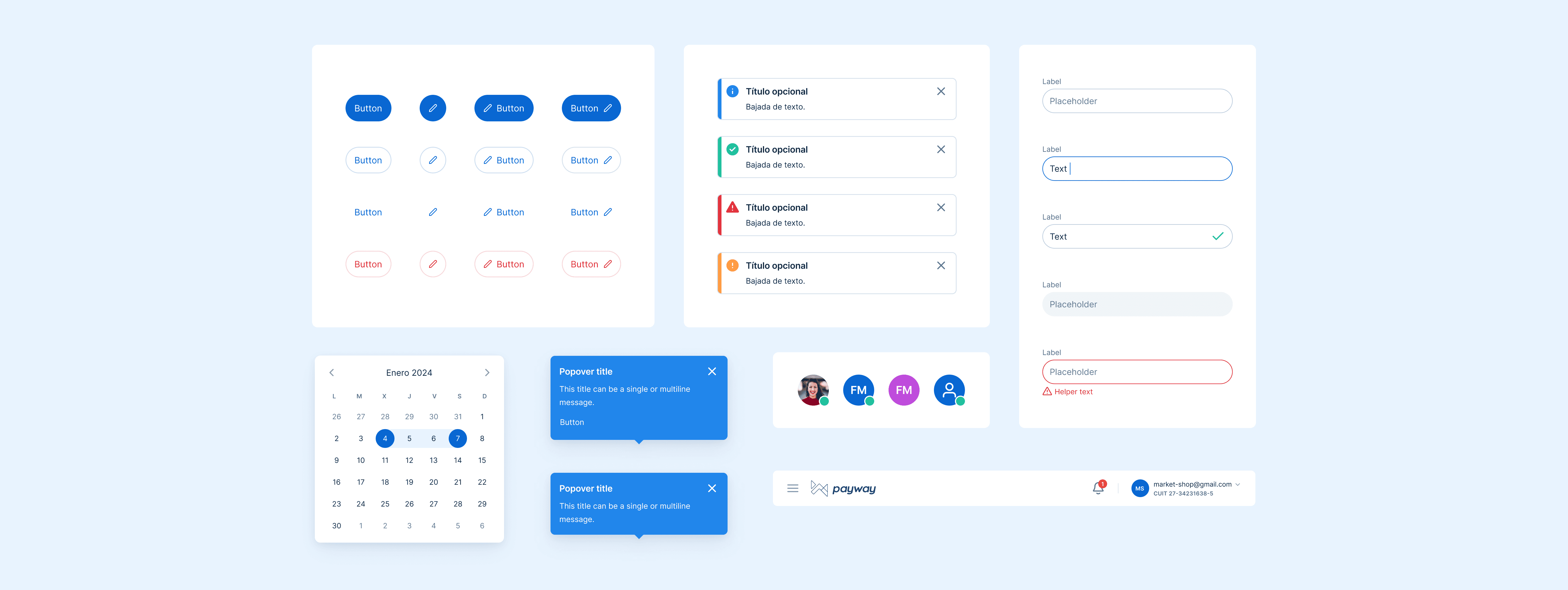 Orbita is the Design System of Prisma Medios de Pago, a multi-brand and multi-device library. Built in Figma and mirrored in a frontend repository with React, it empowers internal users with components that adapts to every project in the company while create a visual and functional ecosystem through an unify language for UX, IT & Product.